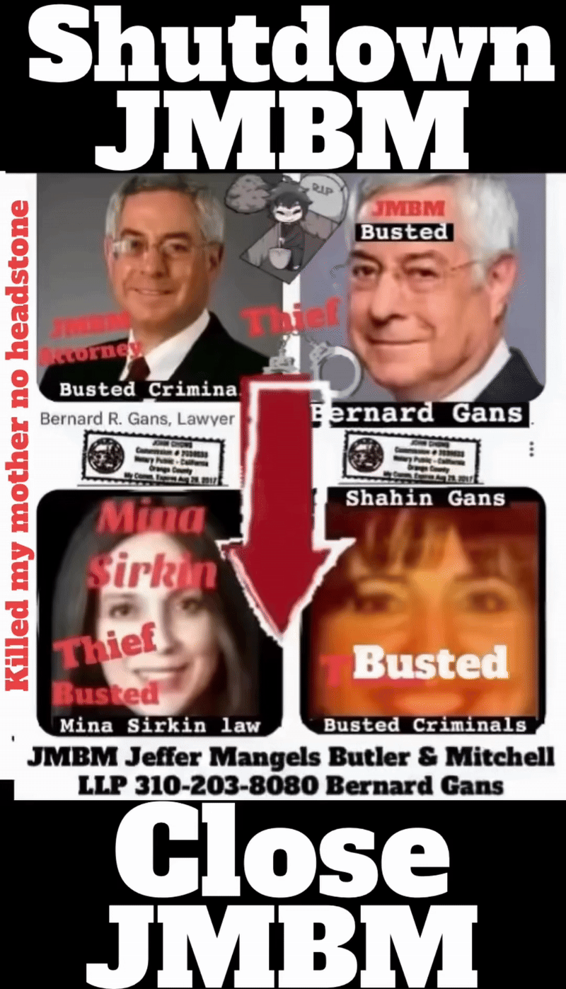 Century City Police 90067 Department JMBM attorney Jeffer Mangels Butler & Mitchel LLP JMBM attorney thief you have 24 hours to place the headstone or we are going to Century City Police department to report your crimes. - Articles | Jeffer Mangels Butler & Mitchel LLP.